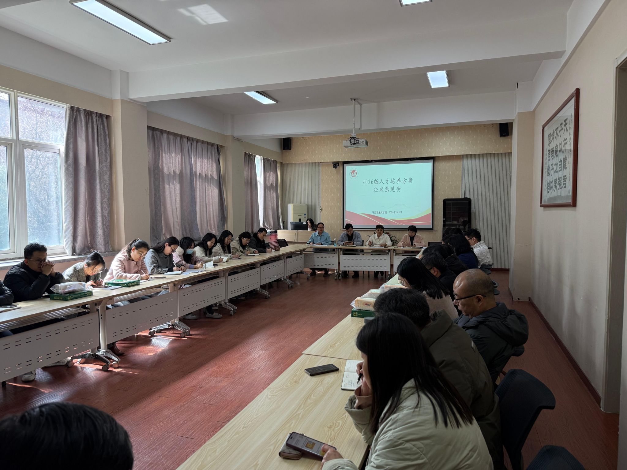 为优化思想政治教育专业人才培养体系,确保人才培养方案契合教育改革要求,2026 年 3 月 5 日,我院召开思想政治教育专业 2026 版人才培养方案修订征求意见会。马克思主义学院领导班子成员及全体教师参加了此次会议。