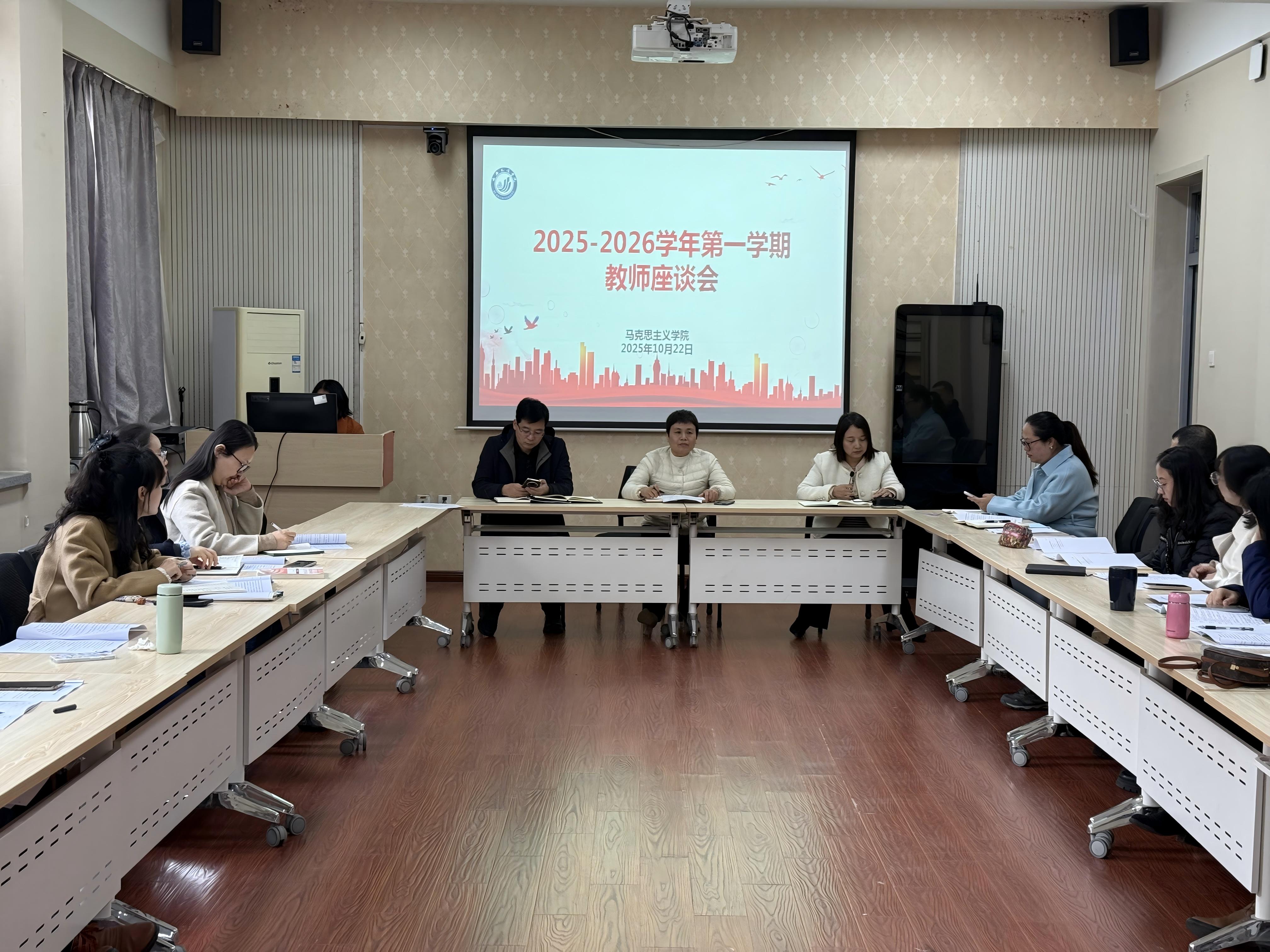 为全面了解教学运行情况,进一步提升教育教学质量,2025年10月22日下午,马克思主义学院组织召开教师座谈会,围绕课堂教学、课程建设、教学管理等方面广泛听取一线教师的意见与建议。
