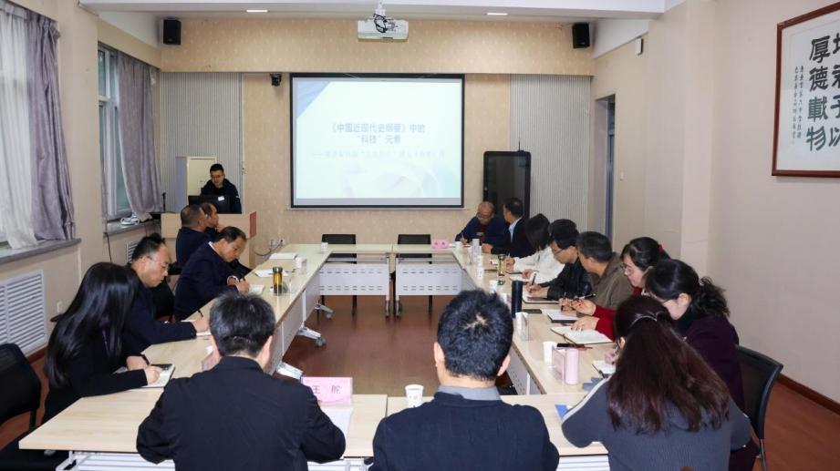11月7日,《中国近现代史纲要》课程组以“科技”为主题,召开了一场别开生面的备课会。本次备课会除了中国近现代史纲要教研室教师参加以外,还特别邀请了生物与环境工程学院赵咏梅、成晓霞两位老师参与研讨。校党委书记王育选、校党委副书记任晖、校务委员徐东升、宣传部部长田建邦、党政办副主任雷阳;马克思主义学院院长刘维春,党总支书记刘永平、教学副院长申晓玲等列席参加。会议由教研室主任宋新邵老师主持。