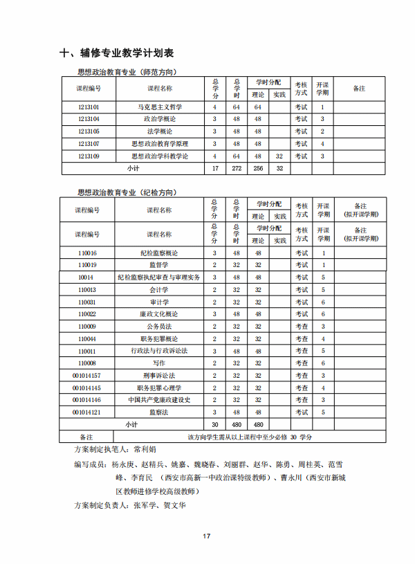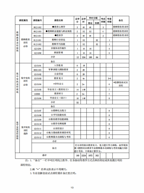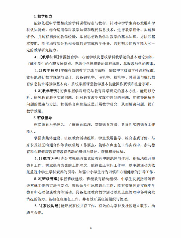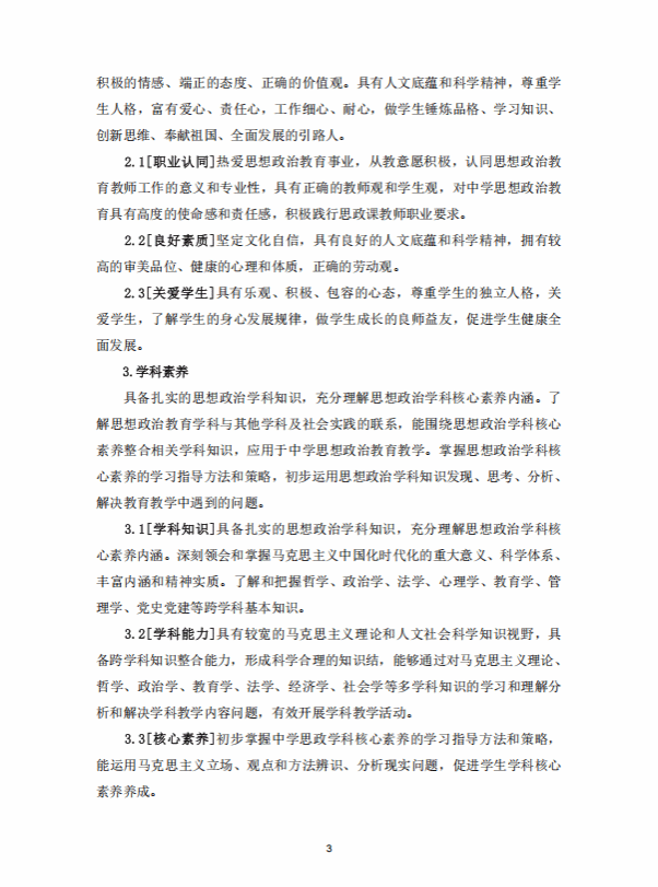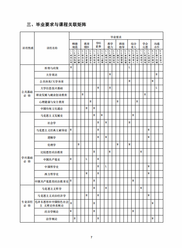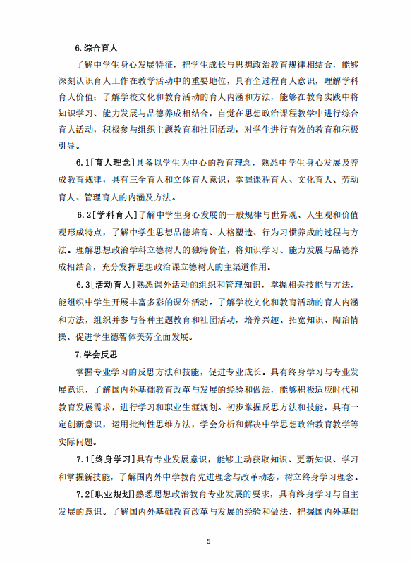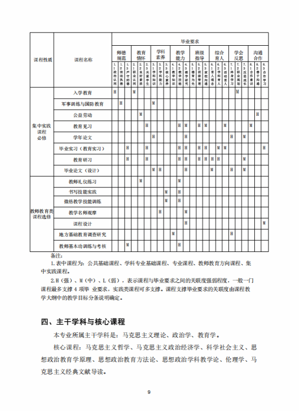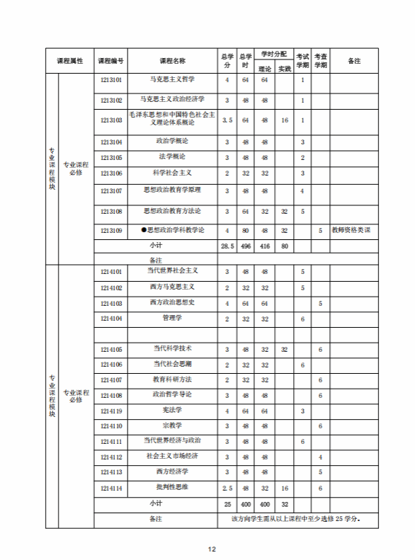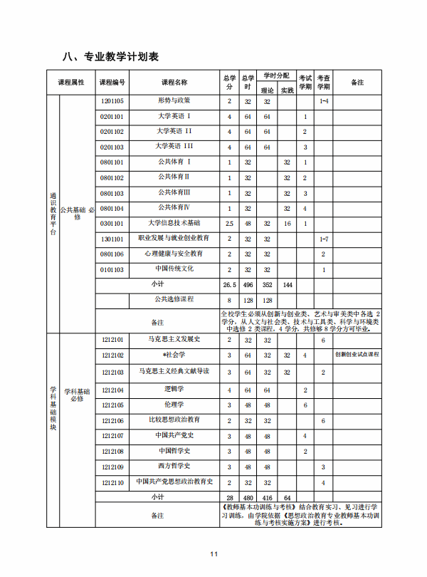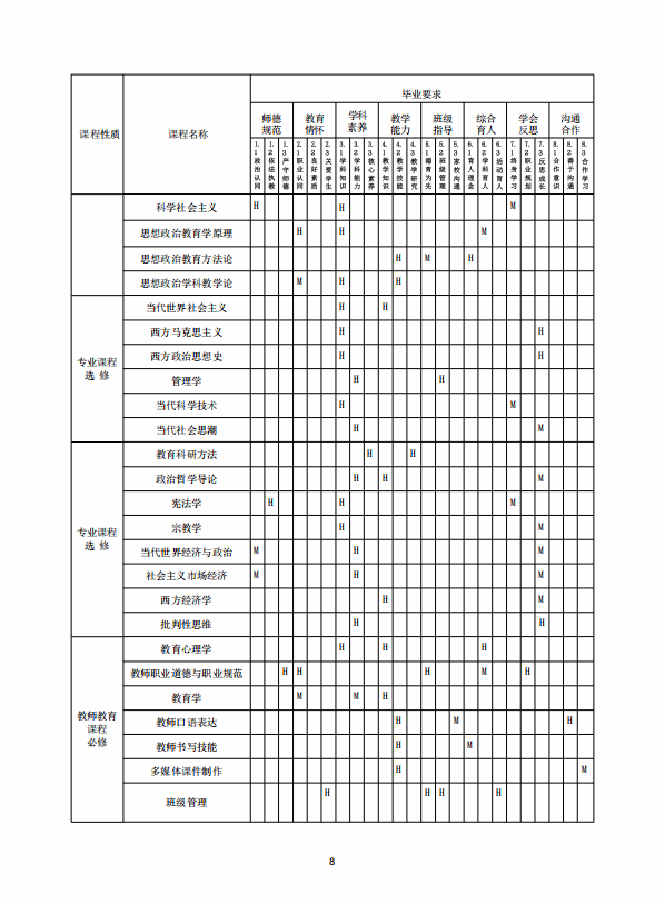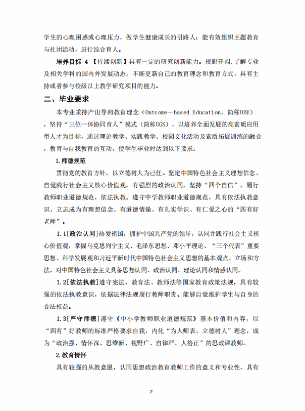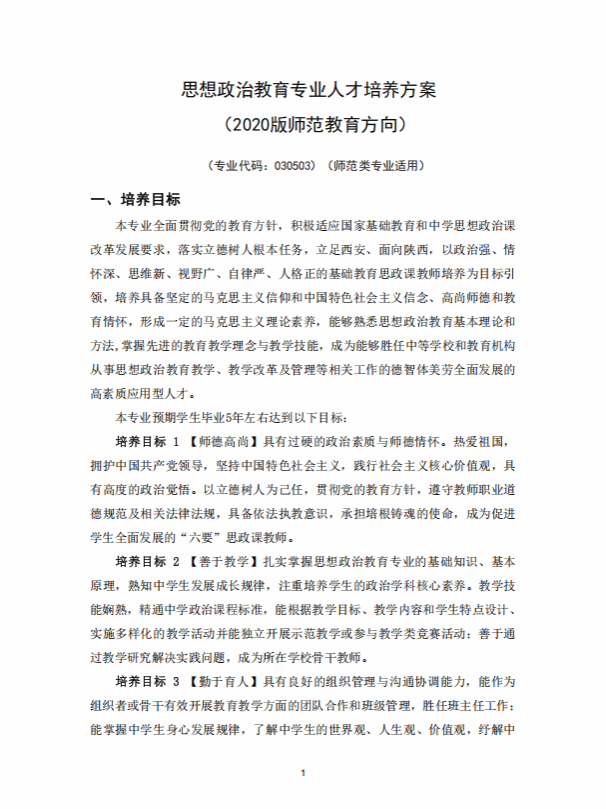 思想政治教育专业人才培养方案 (2020版师范教育方向)
