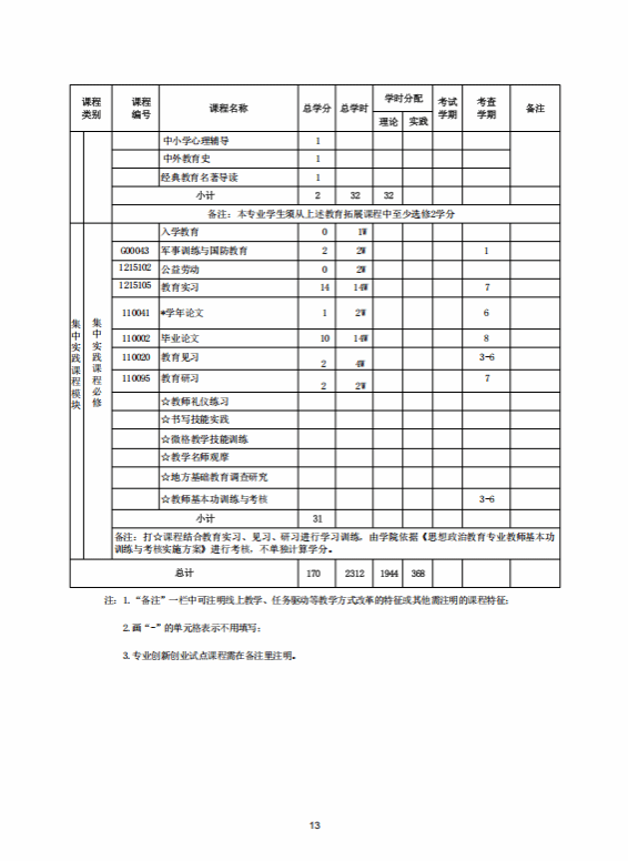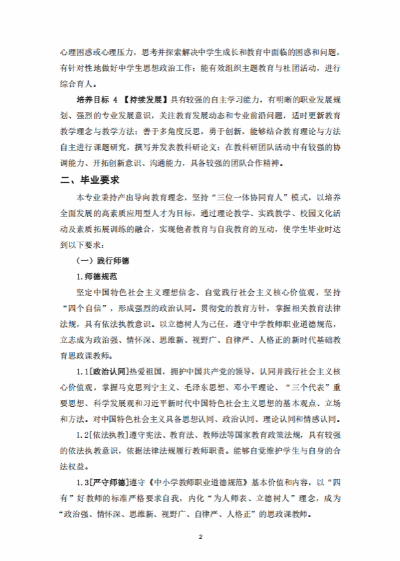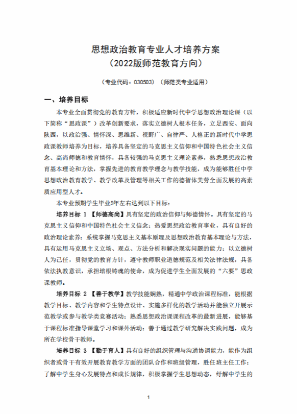 思想政治教育专业人才培养方案 (2022版师范教育方向)