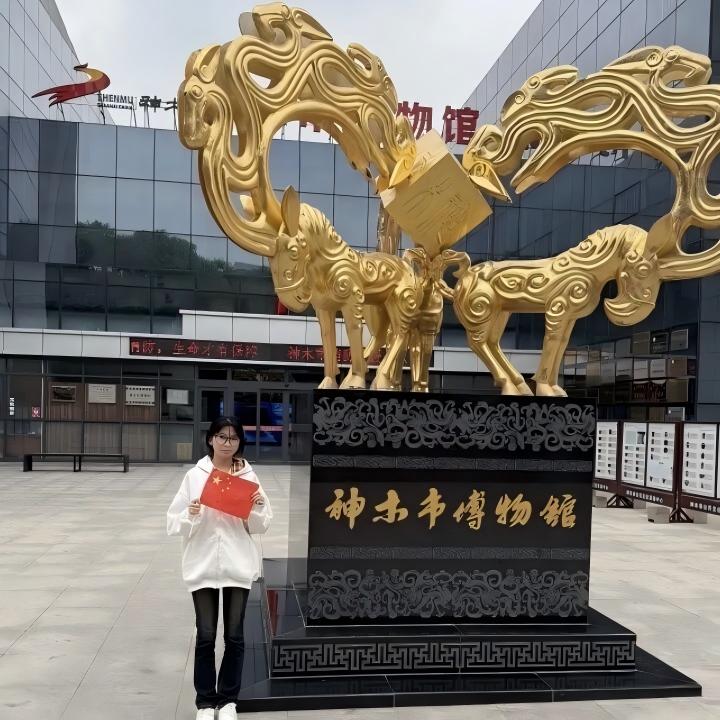在神木市博物馆前,金色的雕塑尽显出文化底蕴,手中的红旗格外鲜艳。正值国庆佳节,愿祖国如这璀璨的雕塑般,在历史的长河中愈发辉煌,祝福伟大的祖国山河壮丽,繁荣富强,在新时代的画卷里书写更多辉煌篇章。