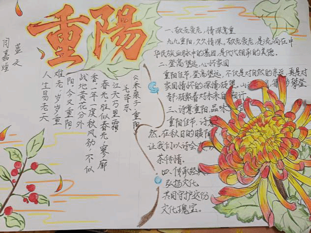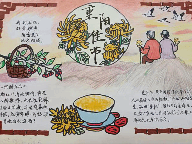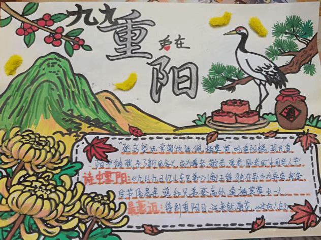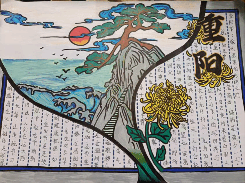 一笔一画皆心意,一纸一墨总关情。此次“菊香满纸,情暖重阳”手抄报比赛,不仅为同学们提供了展示才华的平台,更让大家在创作中深入了解了重阳文化的内涵,将敬老爱老的种子深深根植于心。