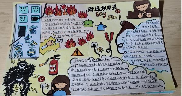为了提高同学们的安全意识,加强宿舍用电安全管理,提高宿舍文化氛围,特举办此次“冬季宿舍用电安全”主题手抄报文化活动。此次活动的开展增强学生对于电器使用安全的认识,让同学们理解到不恰当用电行为可能带来的严重后果,从而在日常学习生活中自觉地遵守用电规范。并且冬季天气干燥,是火灾的高发期,正确的用电安全教育能够有效预防由于用电不当引起的火灾事故,保障学生的人身安全,此外还能减少因电器使用不当导致的财产损失,比如避免由于短路、过载等原因引发的火灾,这些都有可能对学生个人的贵重物品以及学校的公共财产造成损失。